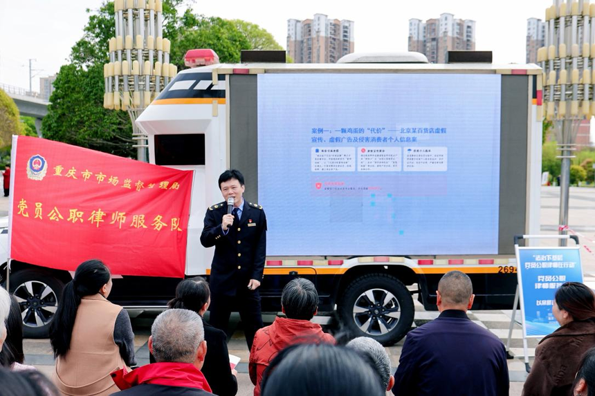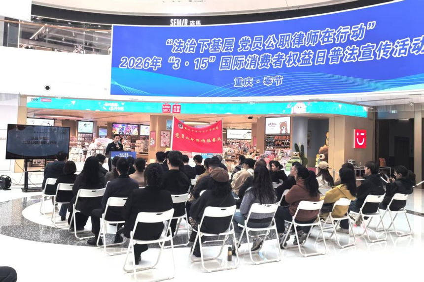 在2026年“3·15”国际消费者权益日来临之际,市局党员公职律师服务队队员于3月12日至13日分别走进铜梁区人民公园、奉节县万达广场,开展“法治下基层 党员公职律师在行动”2026年“3·15”国际消费者权益日普法宣传活动。